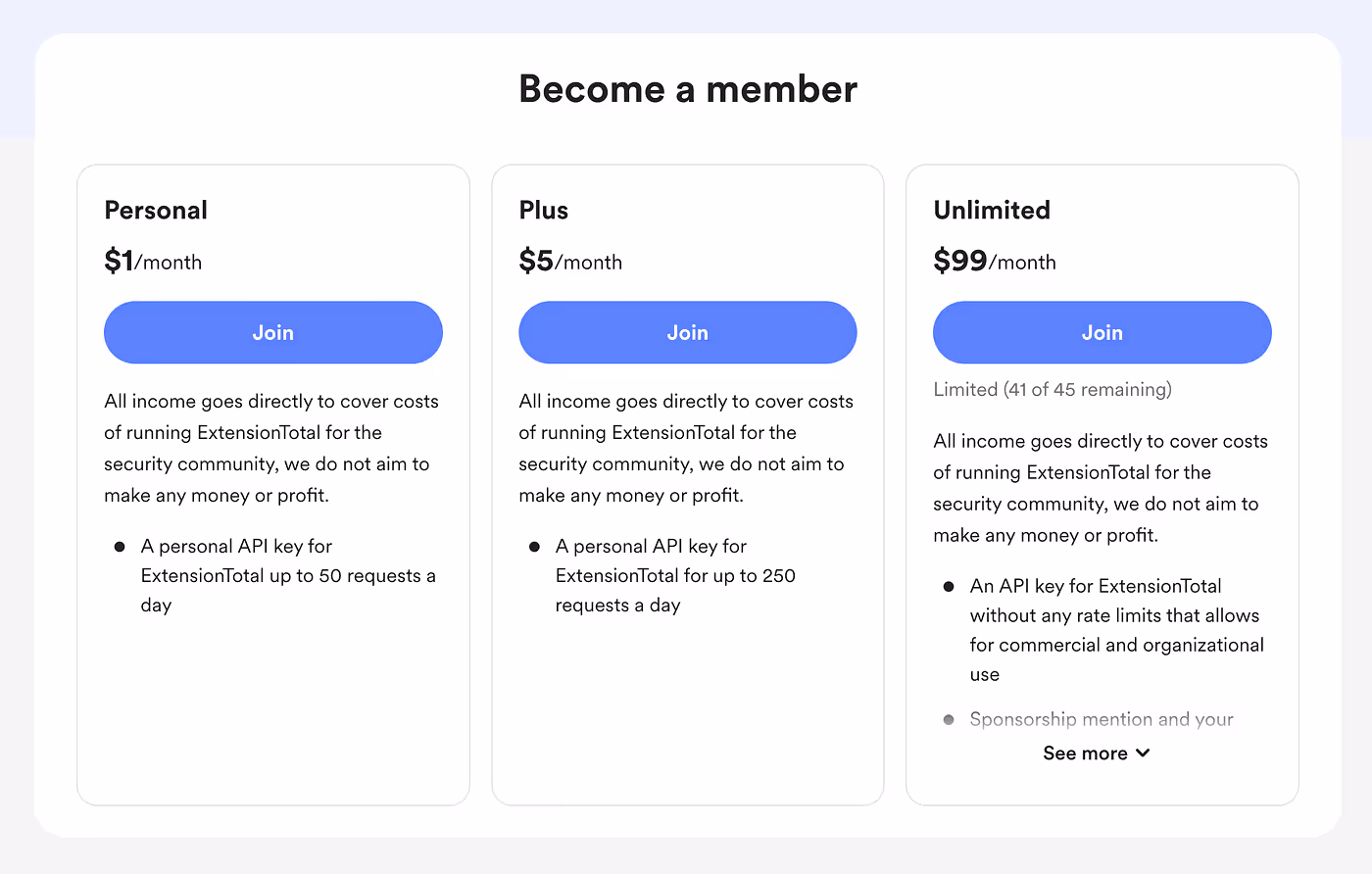 To do this well, we launched the Supporters Program, a way for us to raise funds for ExtensionTotal that will go directly to cover cloud costs.