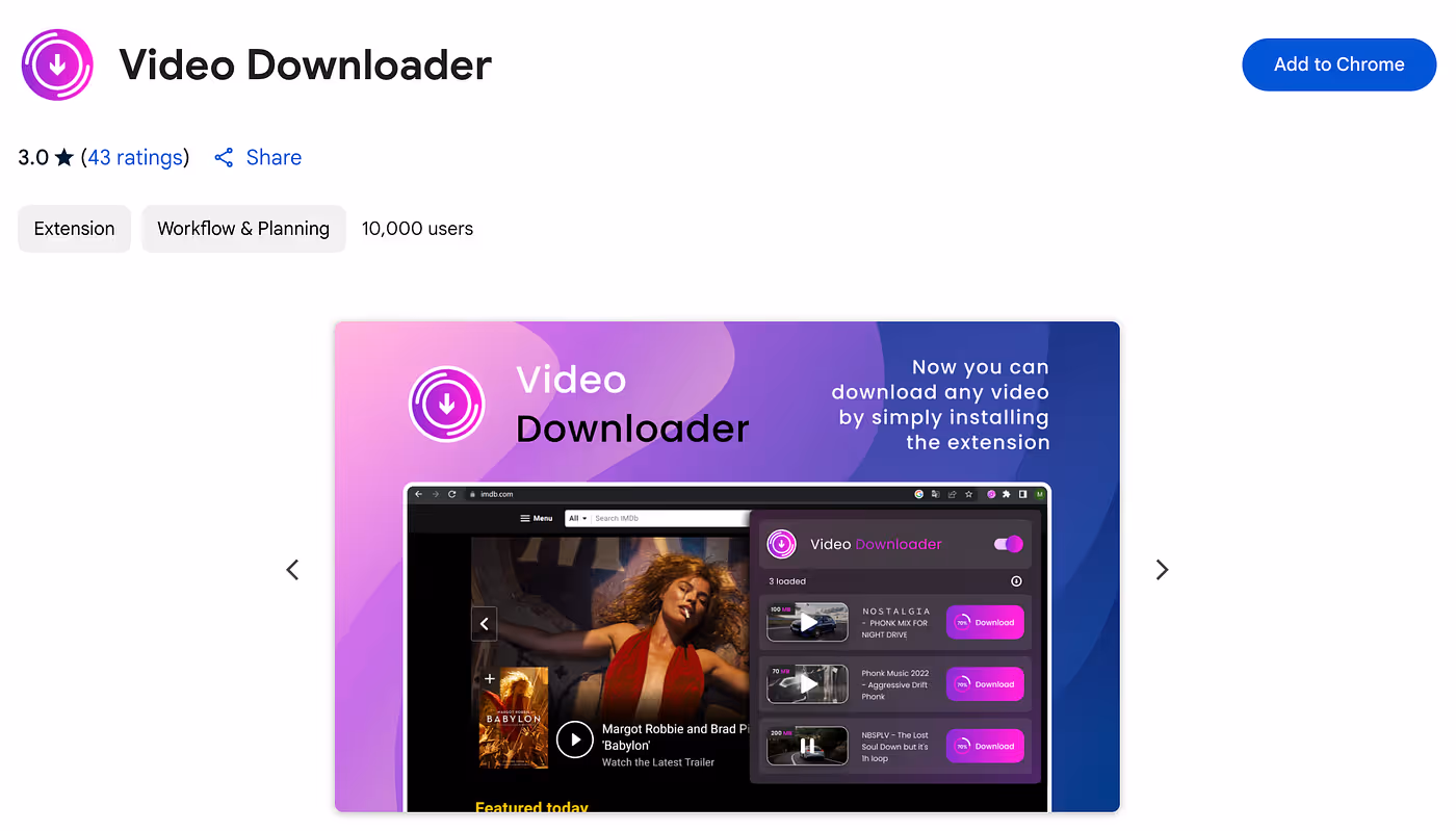 Video Downloader (10K installs): kghcdbkokgjghlfeojcpeoclfnljkbdk (🚨 Live on the store)