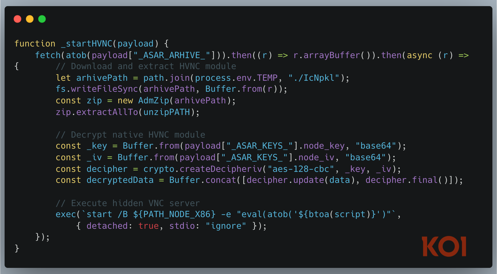 HVNC gives the attacker complete remote desktop access to your machine - but it's hidden. It runs in a virtual desktop that doesn't appear in Task Manager, doesn't show any windows on your screen, and operates completely invisibly.