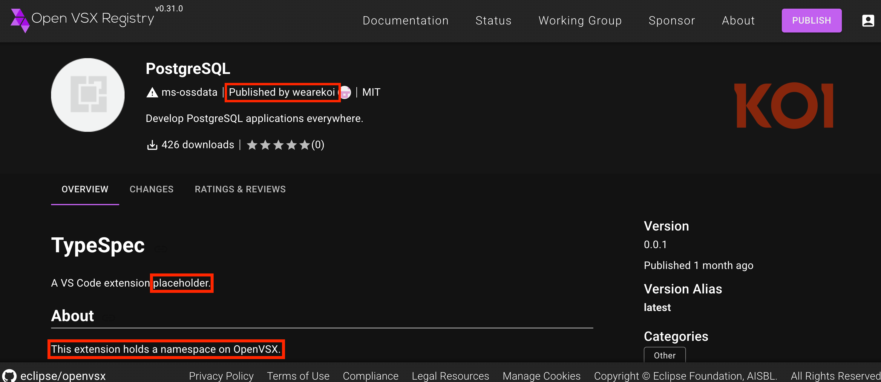 Picture this: An attacker registers ms-ossdata.vscode-postgresql on OpenVSX. Uploads a malicious extension.