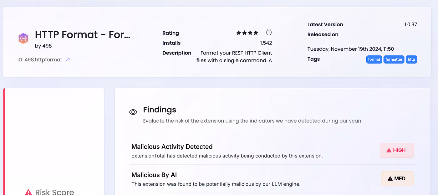 HTTP Format — Formatter for plaint … — Link to ExtensionTotal’s risk page