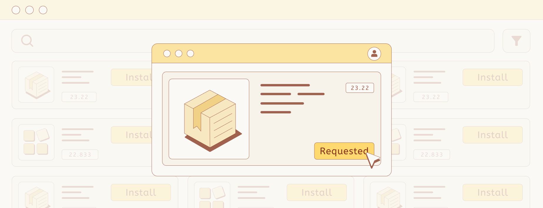 Using Koi’s Supply Chain Gateway, ensure your enterprise teams install only what is allowed. By changing the install button to “request approval” or removing search results over the network, you remain in complete control of your software intake.